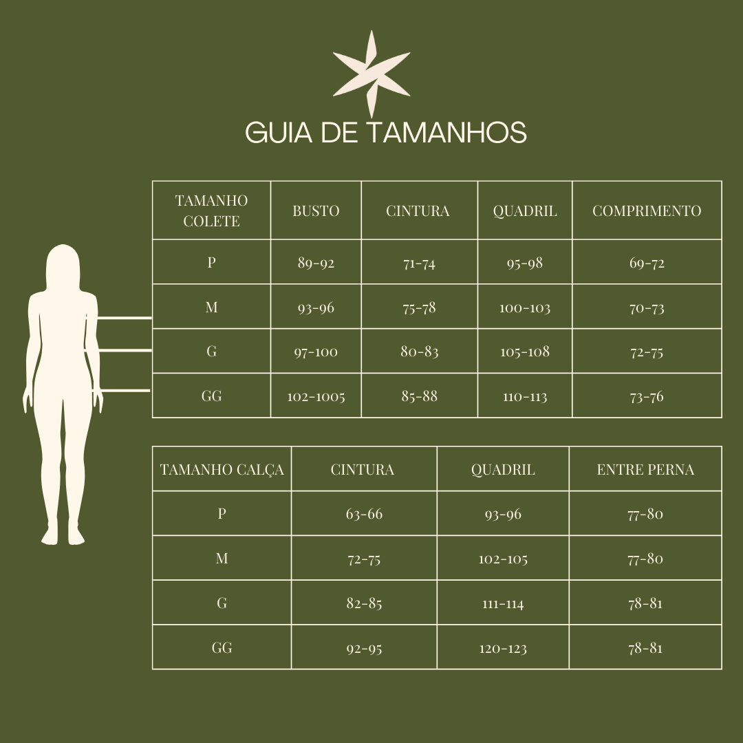 O Colete é o ponto de força do conjunto. Com corte de alfaiataria alongado e acinturado, ele desenha a silhueta com precisão e elegância. Os botões encapados revelam o cuidado com o acabamento, enquanto os recortes no busto conferem estrutura e valorização do corpo. As lapelas laterais frontais acrescentam identidade e sofisticação ao design, e a abertura frontal traz leveza visual, equilibrando autoridade e modernidade.